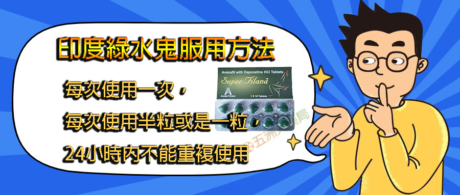 印度綠水鬼是一種不錯的男性壯陽保健產品,它和威而鋼是有點類似的,使用後能改善勃起障礙的問題,調節勃起不強,時間短等問題。而且這種印度綠水鬼的藥效比較強,一般使用一次可以持續36小時,也正因為是這樣所以平常不能過量使用。它的使用方法是每次使用一次,每次使用半粒或是一粒,24小時內不能重複使用,具體看個人的體質。